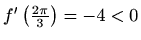 na četiri dijela i dovoljno je na svakom od njih ispitati predznak prve derivacije u proizvoljno odabranoj točki jer se on ne mijenja unutar intervala.